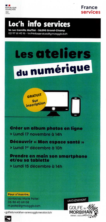???? Les ateliers auront lieu à Loch Info Services à Grand-Champ.